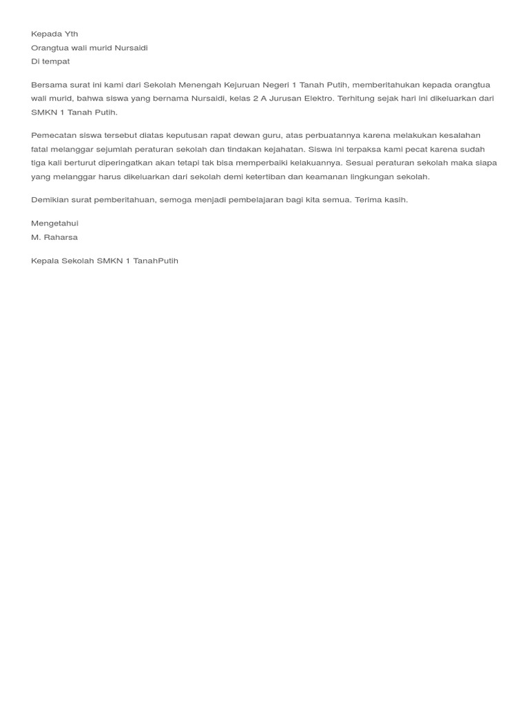 Contoh Surat Pemecatan Siswa